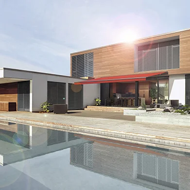 - Schutz von oben für Tuch und Gelenkarme durch das serienmäßige Regendach